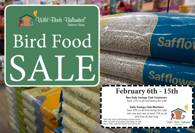 During our Bird Food Sale, take 12% off all bird food or 20% off for Daily Savings Club members. From seed and suet to convenient cylinders, this is an ideal time to restock and continue supporting the birds that bring life to your backyard all winter long.