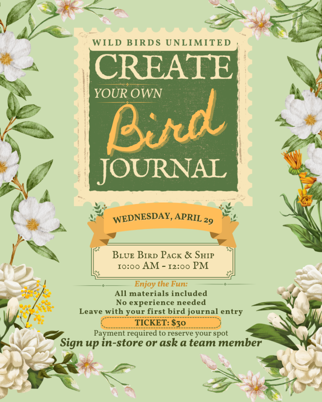 Join us for a relaxed, hands-on class where you’ll create your own bird journal and learn a simple way to track sightings, behaviors, and favorite moments.