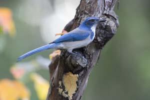 The Florida Scrub-Jay can become very tame around people and will even land on them in search of a tasty hand-out of food.