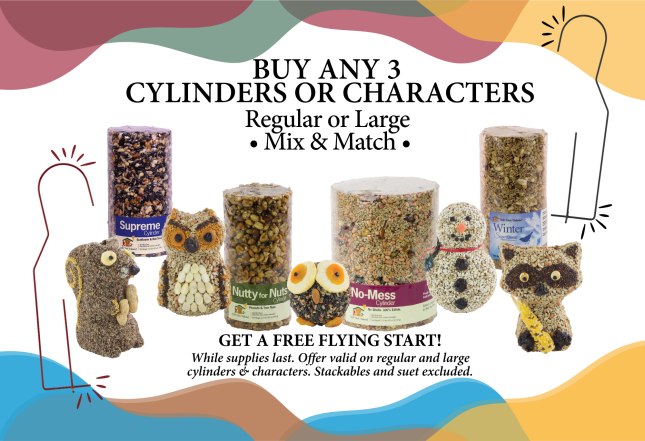 Buy any three cylinders or characters (regular or large) and receive a FREE Flying Start to add extra variety at your feeders.